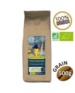 Le café Retour de Pêche est un assemblage 100 % Arabica Bio issu du Brésil, de Colombie, du Honduras et du Pérou. Il offre un nez généreux de fruits secs et de cassonade, ainsi qu’une bouche ronde et onctueuse. Un café gourmand et harmonieux, idéal à tout moment de la journée, à la maison comme au bureau.